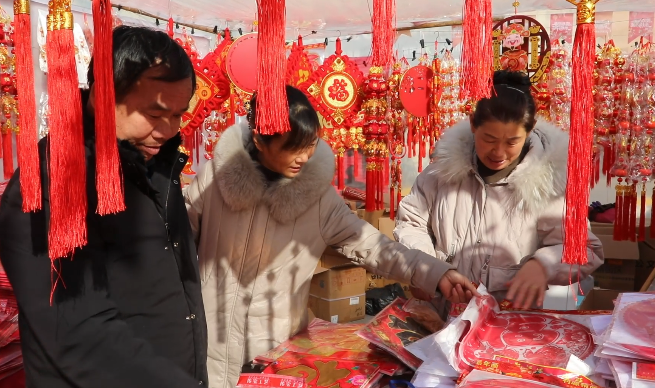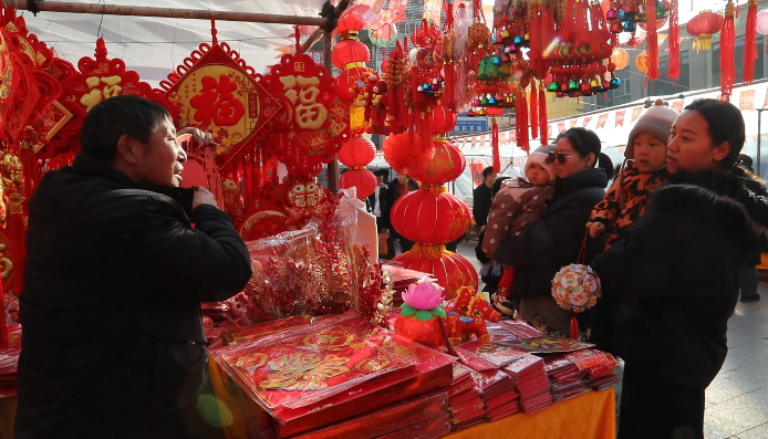 近日,拜城县商业街灯笼高挂,春联、“福”字、中国结等节庆饰品琳琅满目,糖果干货、生鲜肉类、本地特产及日用百货种类齐全,处处洋溢着喜庆祥和的节日气氛。