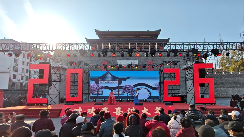 春节将至,年味渐浓。连日来,在庐江厚重的古城墙下,一方简易而明亮的舞台热闹非凡。锣鼓声、旋律声、掌声与欢笑交织,汇聚成一片欢腾的海洋。这里正在进行的,是安徽省庐江县2026年“欢欢喜喜过大年”系列群众文化活动。熟悉亲切的乡音与面孔,真正实现了“群众编、群众演、群众看”,让本土草根“民星”成为新春佳节最闪耀的主角。