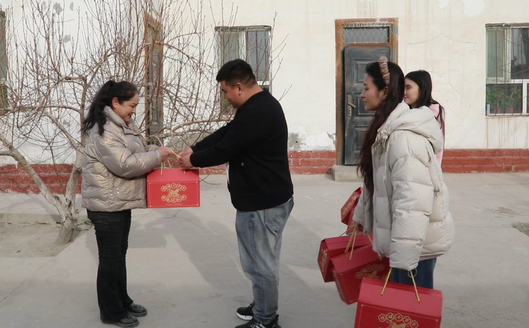 “里面都是瓜子、花生这些过年必备的,看着就喜庆!”察尔齐镇阿热硝尔村村民孜比古丽·居麦接过红彤彤的礼包说道。