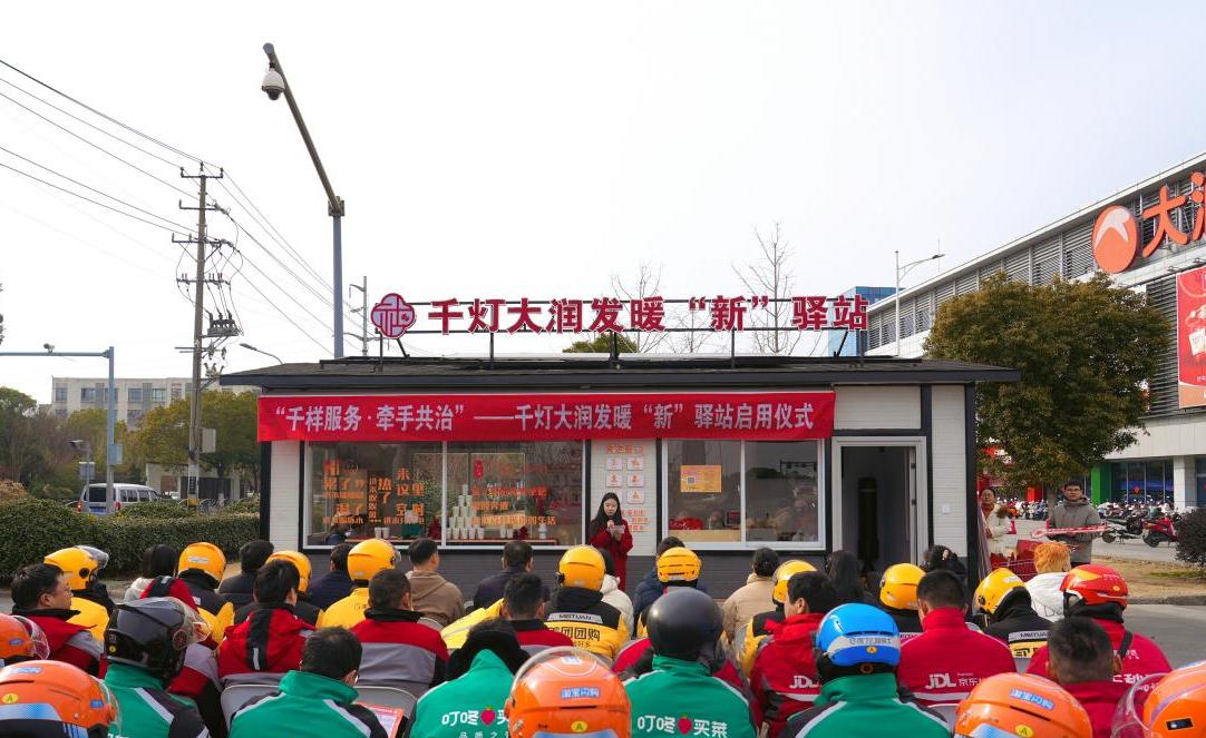 新春将至,暖意先行。2月9日,“千样服务·牵手共治”——千灯大润发商圈暖“新”驿站启用仪式在江苏省昆山市千灯镇大润发广场上举行。昆山市委社会工作部和千灯镇相关领导,镇“两新”组织党委等部门负责人,大润发超市千灯店负责人及周边爱心商户代表,新就业群体站点负责人以及从业人员代表共同见证这一温暖时刻。