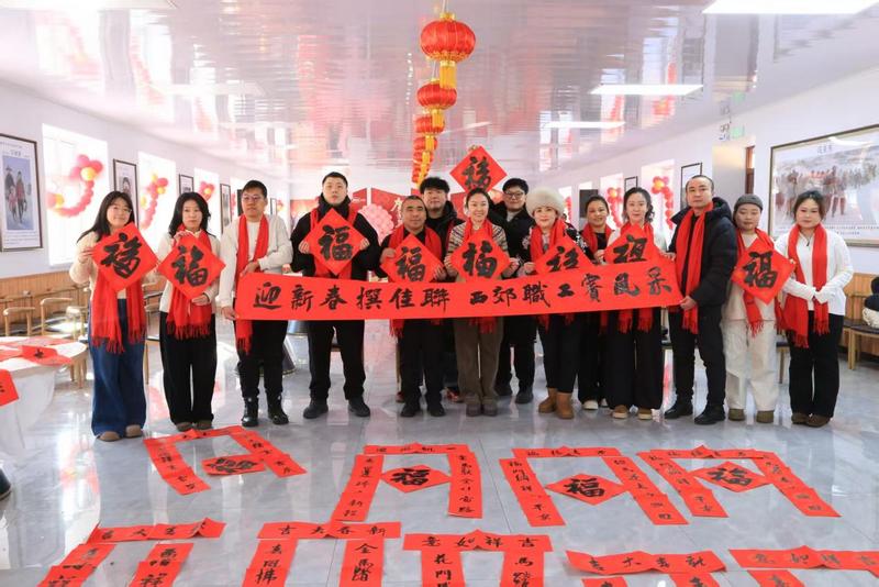 翰墨飘香迎腊八,点亮文化“微心愿”。腊八节,西郊乡在梁家村鱼亮沟开展“写春联、送福字”志愿服务活动,邀请书法爱好者与党员志愿者同台挥毫,以笔传情、以墨送福。活动现场墨香四溢,红纸铺展间,一副副寓意吉祥的春联、一个个饱含祝福的福字跃然纸上,刚劲有力的笔触、喜庆红火的纸张,将新春的美好期许凝于笔墨。党员志愿者们将写好的春联和福字送到现场群众手中,游客们也纷纷驻足参与,或提笔体验手写祝福,或挑选心仪的春联福字,在笔墨书香中感受中华优秀传统文化的魅力,让群众的文化 “微心愿”在浓浓年味中圆满实现。