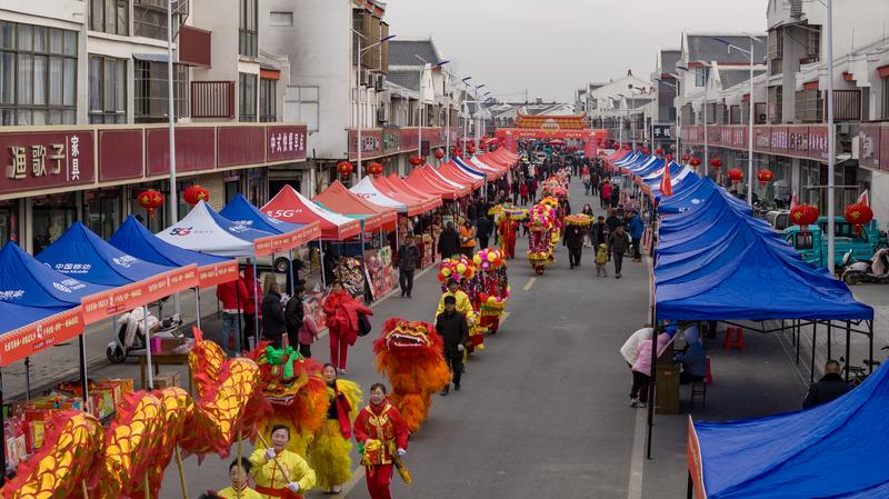 活动现场锣鼓喧天、人流如织,舞龙舞狮、腰鼓、花船、财神巡游等传统民俗轮番上演,猜灯谜、投壶纳祥、套大鹅、回娘家、运粮食等趣味互动项目深受老少喜爱。汤沟本土美酒、特色美食、各村优质农产品集中亮相,既激活了古镇消费市场,也为本地农户、商户搭建了展示展销平台。便民医疗、金融服务、通信办理、免费理发、爱心献血等公益服务同步开展,真正实现“逛市集、赏民俗、购好物、享服务、过大年”一站式新春体验。