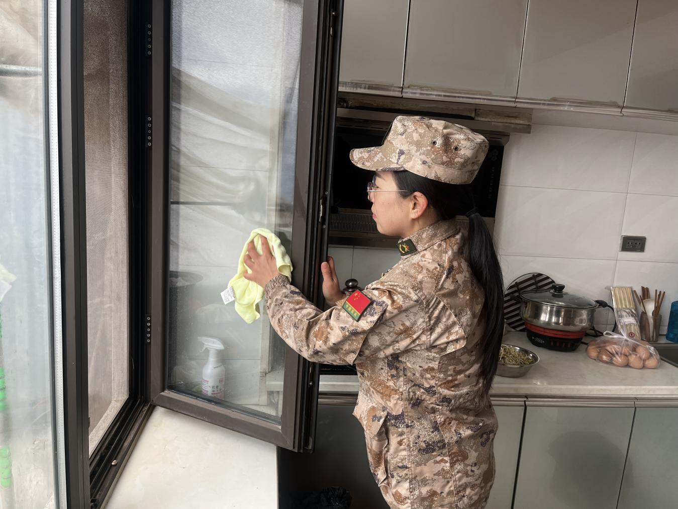 在大炉村退役老兵张海大爷家中,民兵们一进门就忙活起来,清扫院落、整理杂物、擦拭门窗,检查用电用气安全,不一会儿就把屋里屋外收拾得干干净净、亮亮堂堂。“小年扫尘,辞旧迎新,咱民兵来跟您一块儿过小年。”民兵应急排排长邵伟一边擦拭窗户,一边笑着说道。张海大爷紧紧握住民兵的手:“你们来陪我过小年,忙前忙后的,我这心里啊,暖烘烘的!”