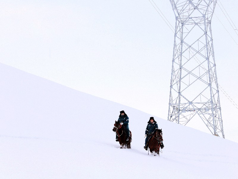 2月10日清晨,新疆伊犁哈萨克自治州昭苏县萨尔阔布乡银装素裹,南天山在朝阳下格外壮美。国网伊犁伊河供电公司萨尔阔布乡供电所所长阿曼吐尔·依沙木丁和徒弟祖丽哈尔·加布克拜,在牧民帮助下骑上骏马,踏上巡线之路,守护新春电网安全。