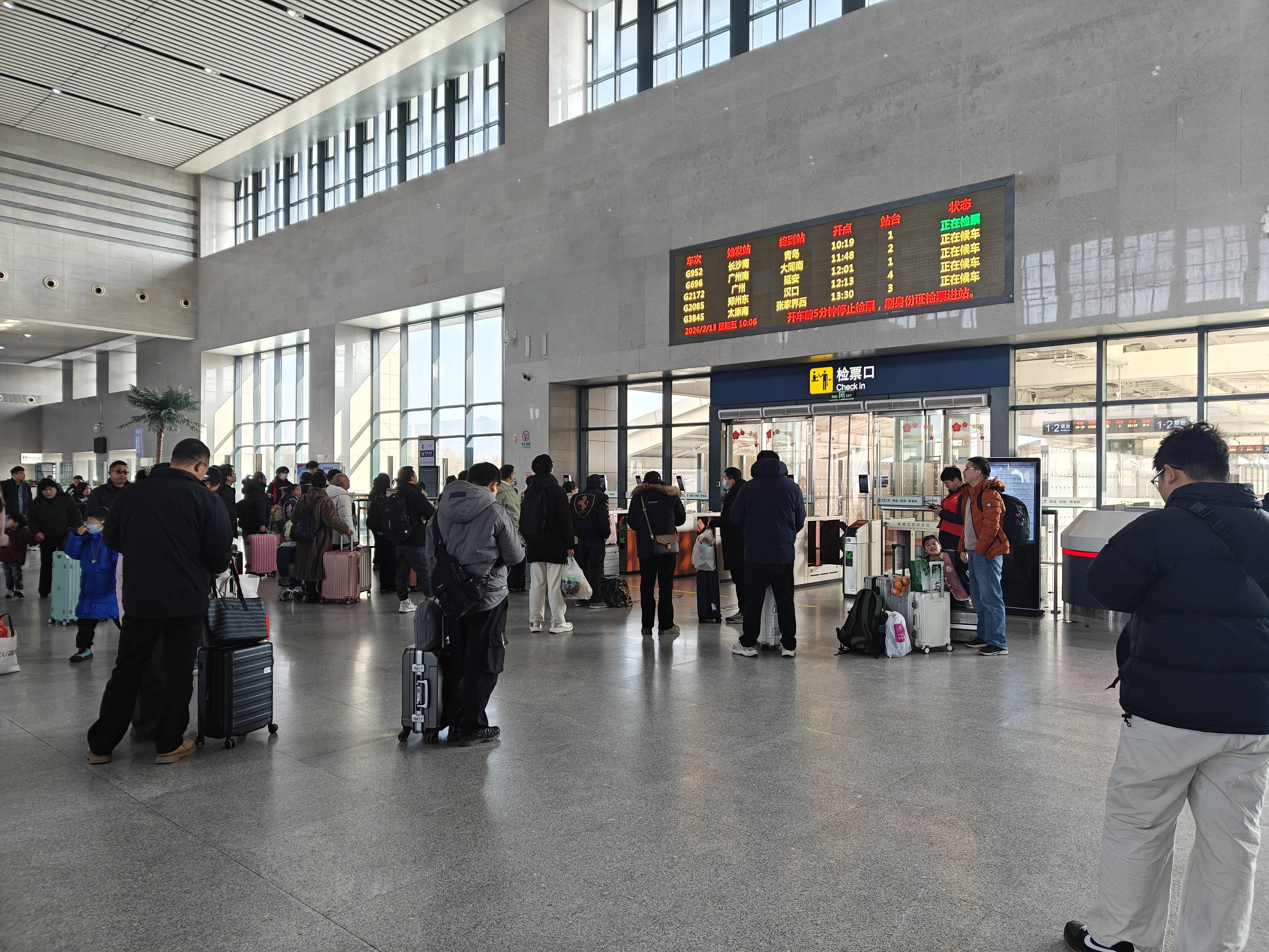 乘客在高铁站车站有序乘车 (易荣波 摄)