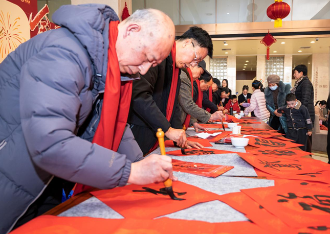 指尖凝墨香,红联送福来。活动现场,老年大学的书法爱好者、兴化农商银行工会书法兴趣小组成员及多才多艺的员工子女同台挥毫,红纸铺展,墨汁浓醇,一撇一捺间,书写出一副副寓意吉祥的春联,一个个饱含祝福的福字。刚写好的春联还带着墨香,便被现场客户争相领取,手写的温度,让新春的祝福更有心意,一张张红联,也为现场添上了最浓郁的新年色彩。