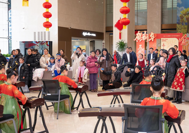 丝竹绕厅堂,筝音贺新春。古筝培训机构的小演奏家们身着雅致服饰,指尖轻拨琴弦,婉转悠扬的筝音便在大厅中流淌,兴化农商银行工会古筝兴趣小组成员也同台演奏,经典的旋律搭配新春的氛围,现场仿佛置身于一场雅致的民乐盛宴。现场客户驻足聆听,沉浸在筝音的美好之中,声声乐音,奏响了新春的美好序曲。