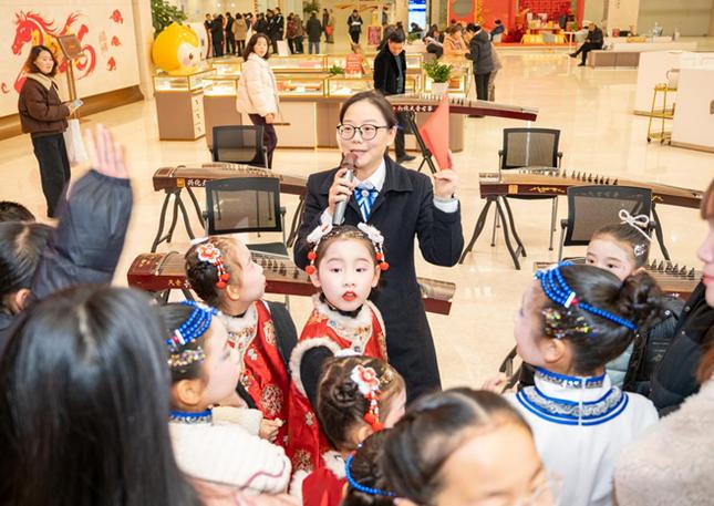 古筝培训机构的小演奏家们身着雅致服饰演奏古筝(王梓靖 摄)