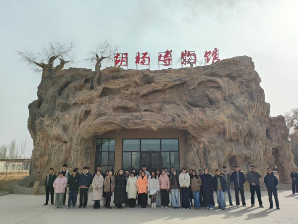 学子们在沙雅县胡杨馆前合影留念(布早热木·艾麦提 摄)