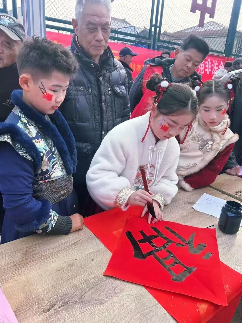 分水镇“小春联撬动大文明”,10余名书法家连续9年送春联进企业、村组,2800幅手写春联让来自襄阳的青年张阮籍感叹“这是文化的归属”;城隍镇“文艺搭台、助企惠民”,12个节目轮番登台,台下38家企业现场招聘、农特产展销、相亲联谊与防诈宣传同步进行,600余名群众在年味里收获岗位与知识;新堰镇“定制春联寄心愿”,书画家为村民量身书写“家有考生”“新居落成”等个性化祝福,送出春联400余幅、福字百余个;杨林沟镇“非遗薪火少年传”。杨林小学学生舞动孝感非遗蚌壳精、游龙穿行老街,孩子们走进敬老院为老人写福字、演节目,让非遗传承与敬老孝亲温情交接。