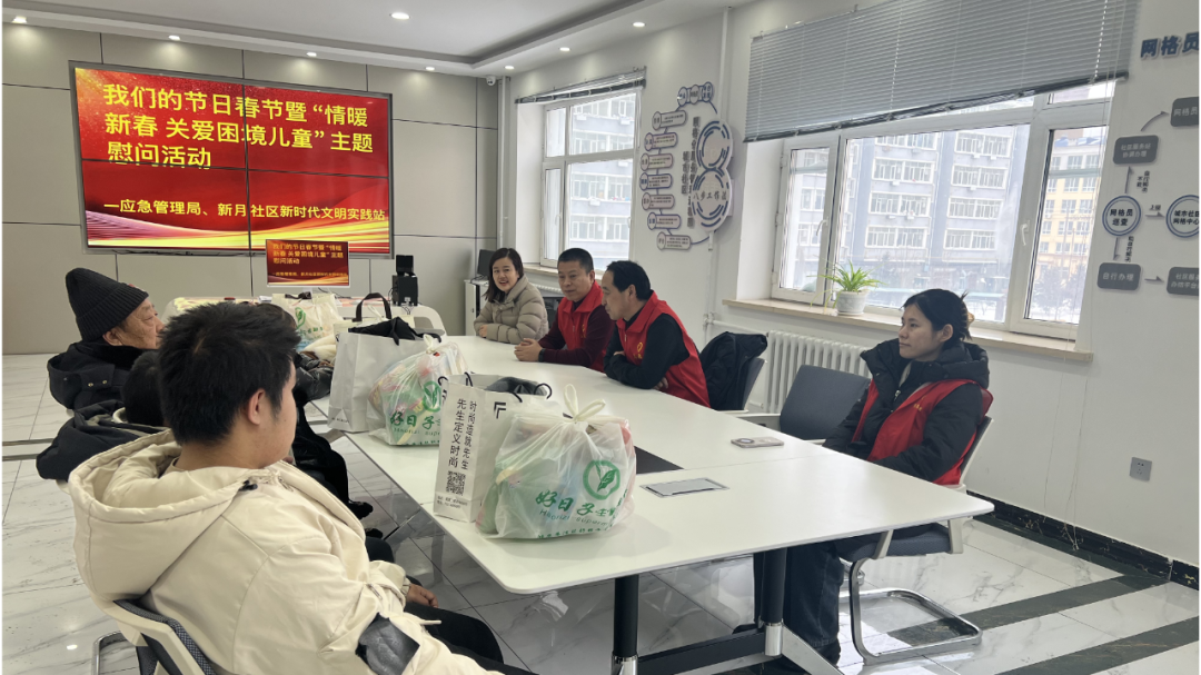 新月社区联合应急管理局为辖区困境儿童送“新春礼包”( 鞠鑫淼 摄)