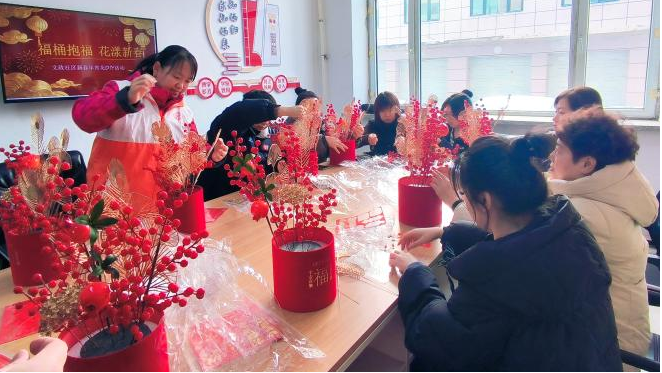 文政社区“福桶抱福”年宵花DIY活动(鞠鑫淼 摄)