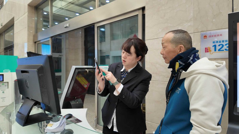 2月22日,国网巴州供电公司营业厅工作人员指导客户使用“网上国网”APP进行购电。(仲泽平 摄)