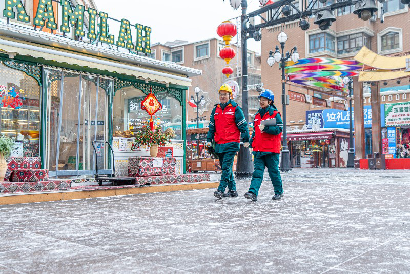 针对热门景区、滑雪场、民俗街区等文旅场所,国网新疆电力专门组建景区保电服务队,提前对景区配电线路、造雪设备、景观照明、商户用电开展专项检查,驻点值守、快速响应,以可靠电力保障景区正常运营,助力新疆冰雪经济、文旅产业高质量发展。