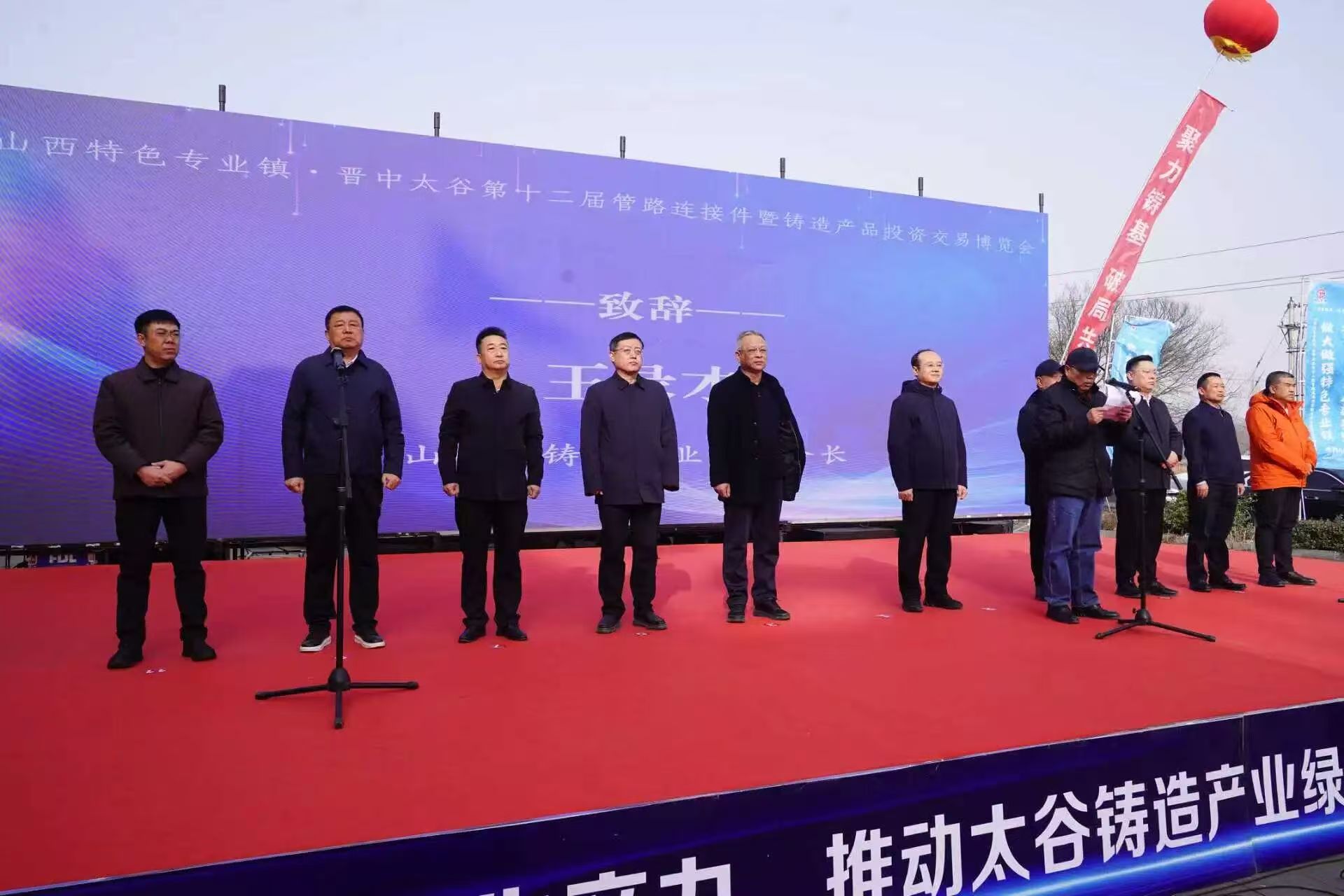 2月22日,山西特色专业镇建设·晋中太谷第十二届管路连接件暨铸造产品投资交易博览会在太谷玛钢会展中心开幕,来自全国各地的业界翘楚、投资精英相约“中国玛钢之都”,共商发展大计,共谋美好未来。山西省铸造行业协会会长王录才,晋中市工信局转型综改促进中心副主任周争光,太谷区委副书记、区长张向明,太谷区委常委、常务副区长程锡威,太谷区委常委、副区长郭凯,太谷区经开区管委会副主任黄月飞出席开幕式,太谷铸造协会会长朱荣耀宣布博览会启幕。