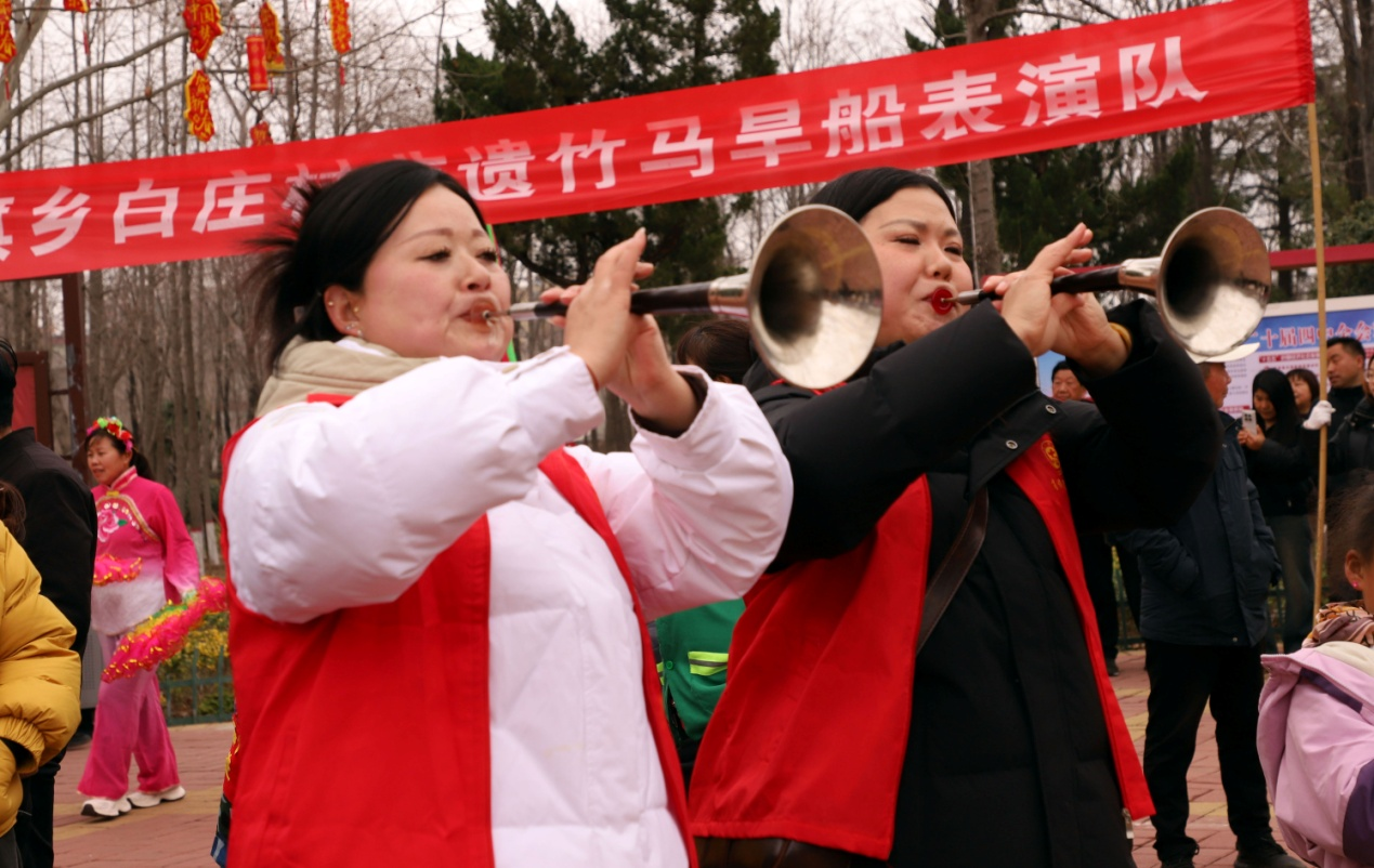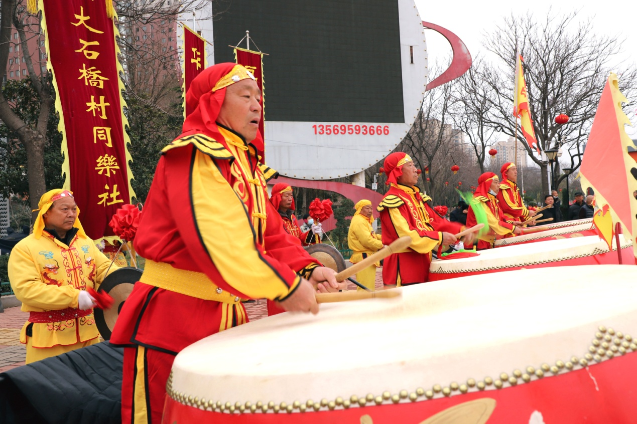 当天上午,在热闹的新世纪广场,阵容强大的宝丰县石桥镇同乐社百人表演团队旁挤满了群众,随着催春擂动的战鼓、清脆的铜镲,两条巨龙上下翻飞,现场立时爆发出阵阵喝彩声;宝丰县大营镇的盘鼓表演团队旁的群众也是熙熙攘攘,随着鼓手的手中红旗舞动,鼓声立时响彻云霄,那音律或激昂、或舒缓,变幻无穷,令人心潮澎湃;宝丰县观音堂林业生态旅游示范区的陕北大秧歌和竹马旱船表演团队,让大家领略了大秧歌的风采,欣赏了传统竹马旱船的神韵;与此同时,在人头攒动的宝丰县人民公园表演场地,宝丰县父城街道、肖旗乡、前营乡等团队,纷纷亮出了带来的节目。一场场酣畅淋漓的节目,让现场观众连呼,“真美,真过瘾!”并纷纷拿出手机记录这精彩的瞬间。
