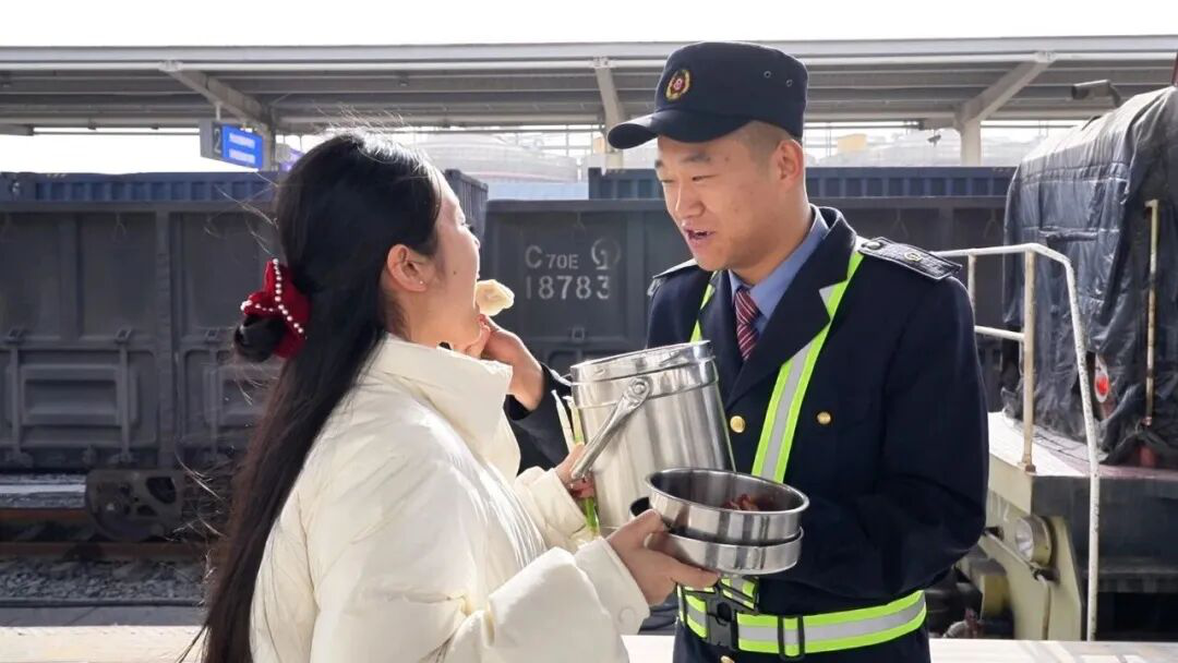 对于刚结婚不到一个月的小两口而言,这个除夕格外特别。妻子用一场奔赴站台的温暖守候,让坚守岗位的潘海波感受到了最踏实的家的温暖,也让这场二十分钟的相聚成为新春里最动人的画面。妻子马安娜说:“刚刚结婚不到一个月,结婚第一年的团圆饭肯定是要和家人一起吃的,谈恋爱时他年年都在岗,我早就理解也支持他,知道他回不来,我把亲手包的饺子送过来,这是他最爱吃的馅儿,我们也算是一起吃上了团圆饭,就想让他在除夕,能够吃上一口热乎的年夜饭。家里有我,一切放心,这样也很有意义,平安归来就是我最大的心愿。”