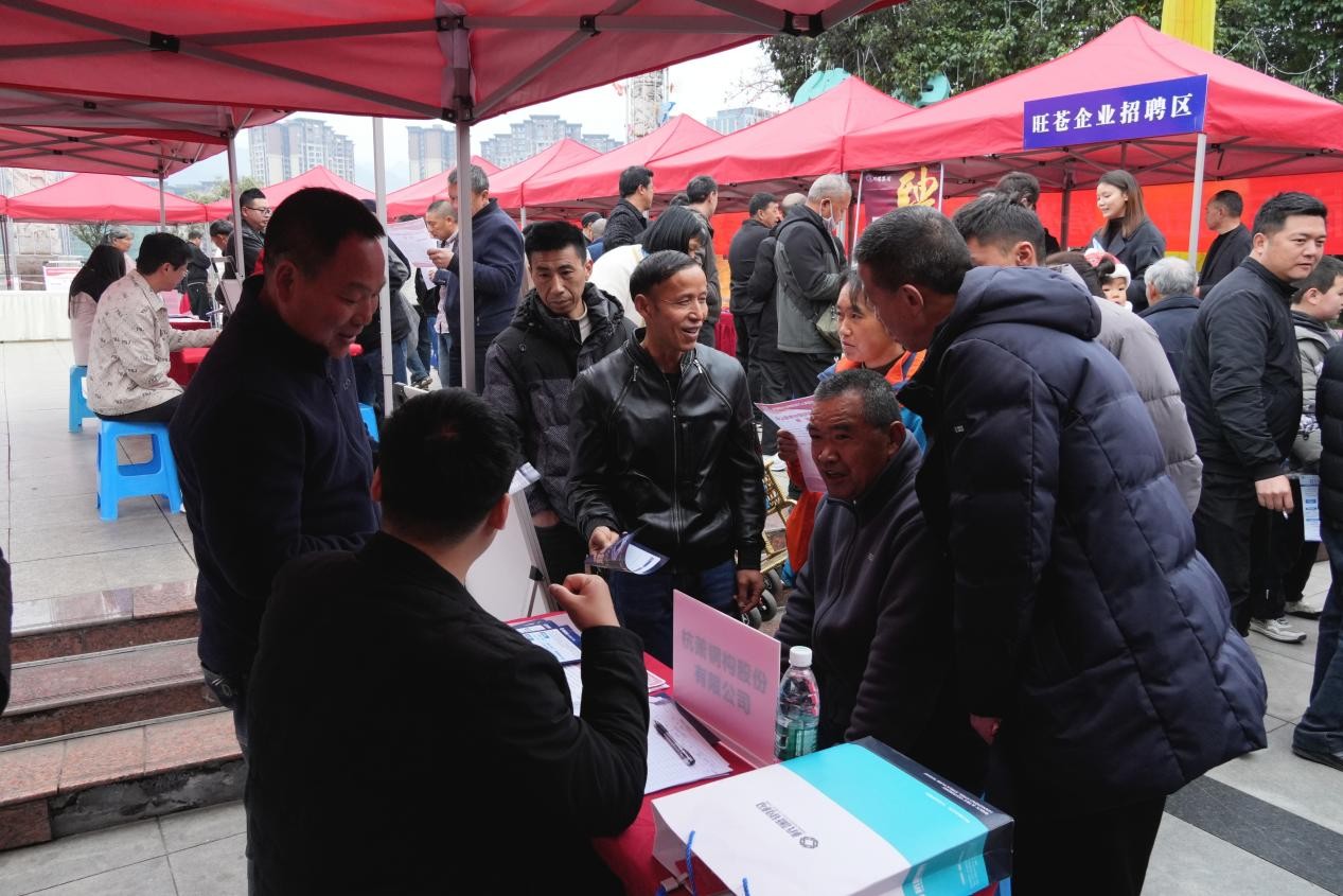 一大早,48岁的高阳镇向阳村村民何永芳手持用工宣传单,在各个展位前仔细挑选;27岁的石强对着杭州企业的招聘简章拍照,兴奋地与家人分享求职喜讯。早春时节,求职热情与就业暖意交织,成为节后旺苍最动人的民生图景。