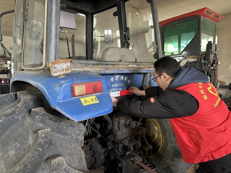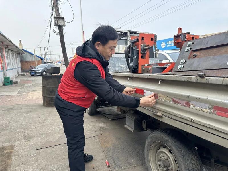 活动中,志愿者们携带反光贴、清洁工具,走进田间地头、村民院落,对农用拖拉机、三轮车、四轮车等车辆逐一排查。大家认真规范粘贴反光标识,重点在车辆尾部、侧面等关键位置加固贴牢,确保夜间、阴雨雾天反光清晰、辨识度高。