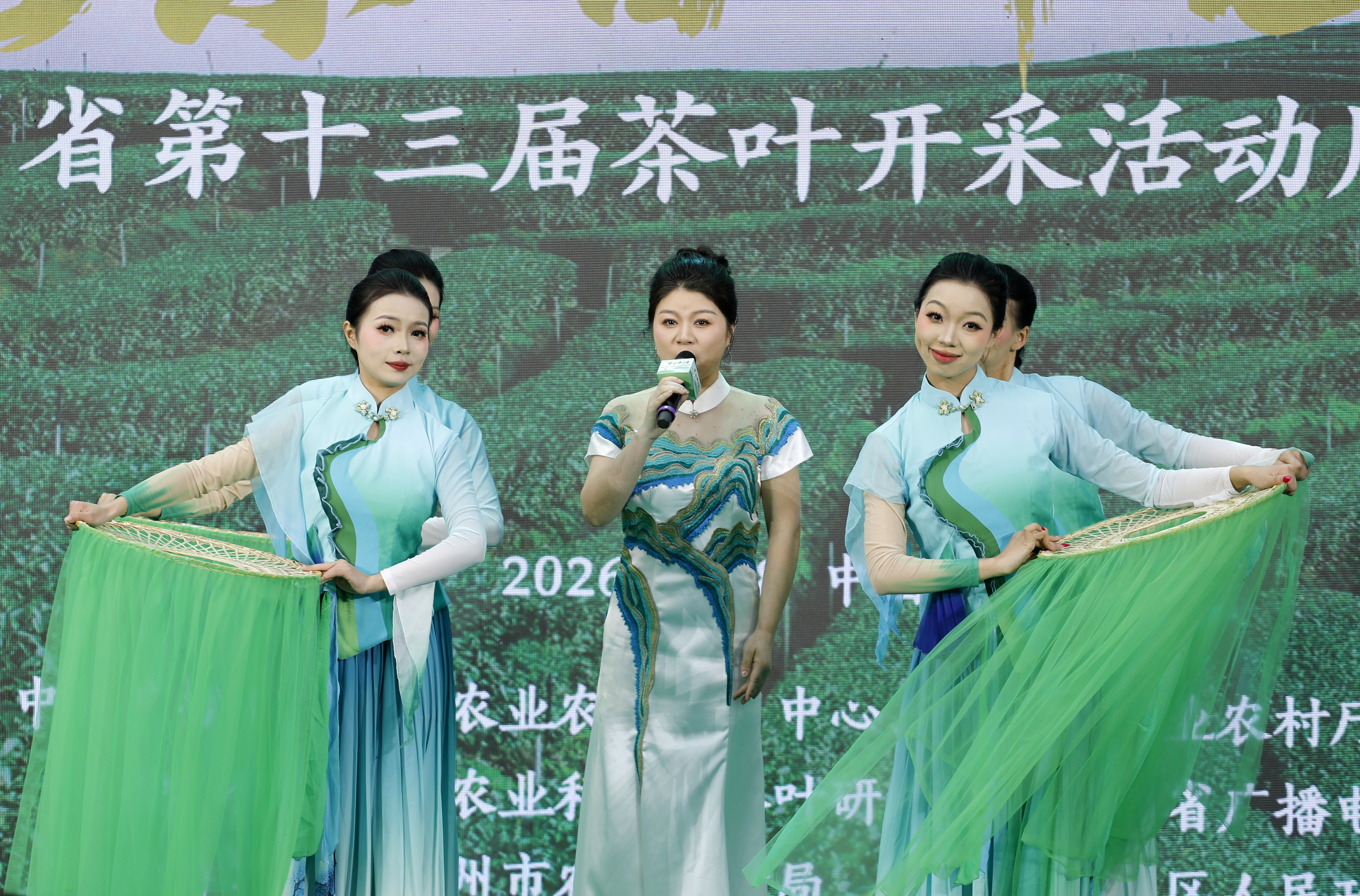 舞蹈《那溪那山》拉开活动序幕,舞蹈演员们身着青绿纱裙,手持茶篮,在舞台上模拟采茶制茶,青山绿水与曼妙舞姿融为一体,仿佛将茶园的清风送到观众席间。