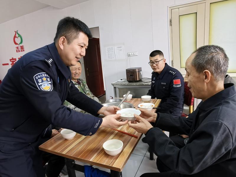 活动现场处处洋溢着温馨与欢乐。民警带着精心准备的汤圆、水果、牛奶等慰问品,与老人们围坐在一起,细心询问老人们的身体健康状况、日常饮食起居以及生活中遇到的困难,耐心倾听老人的心声与诉求,叮嘱老人们注意添衣保暖、保重身体。大家亲手为老人们煮制汤圆,将一碗碗热气腾腾、香甜软糯的汤圆送到老人手中,细心照料行动不便的老人,香甜的滋味温暖了每一位老人的心田。