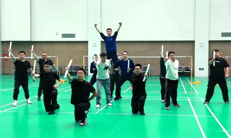 社火队员在体育馆排练节目 (龙证宇 摄)