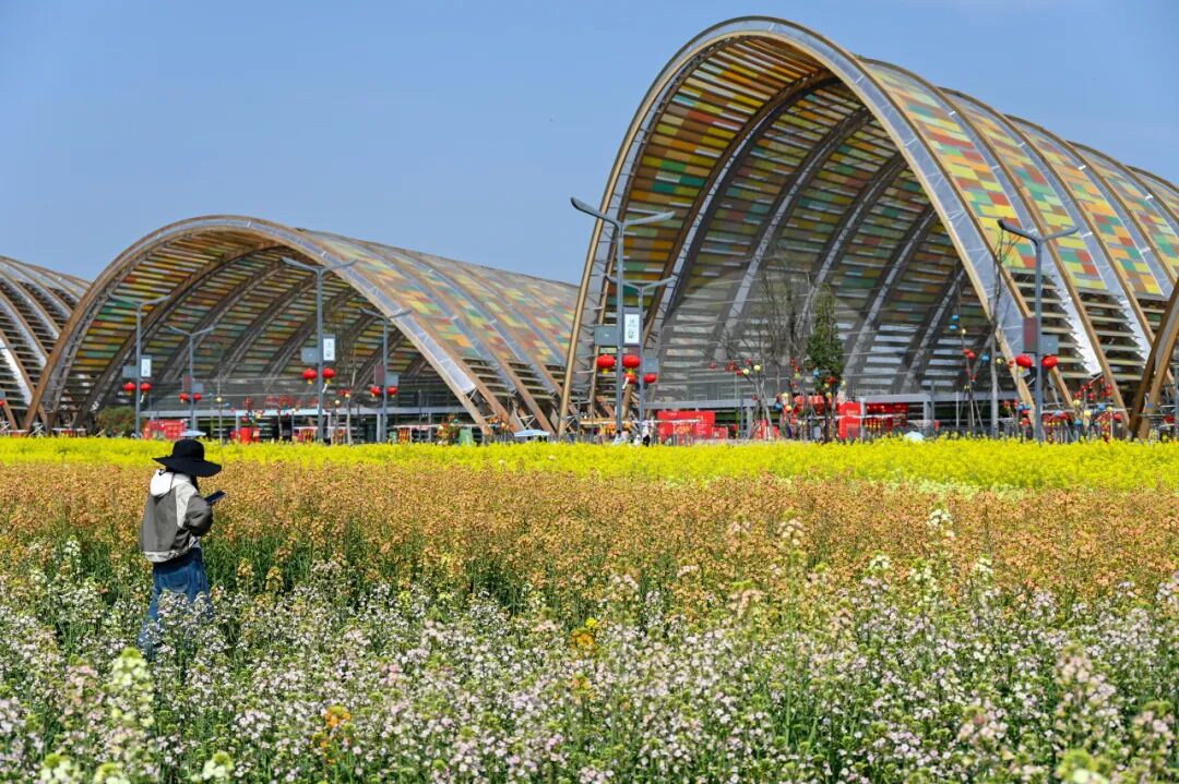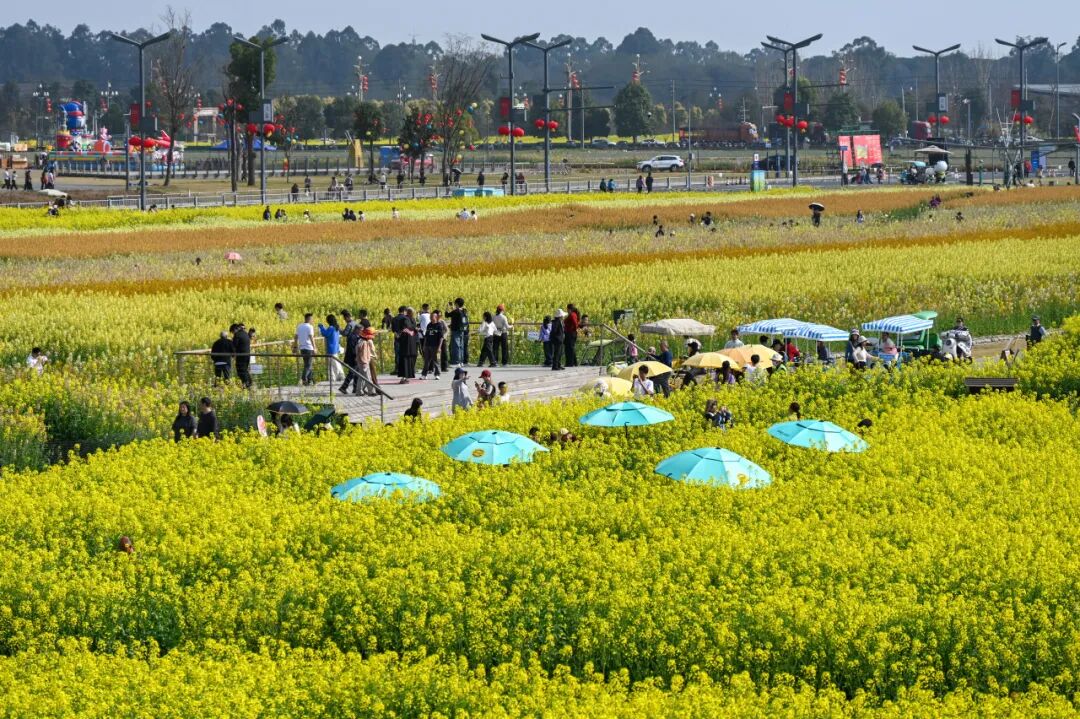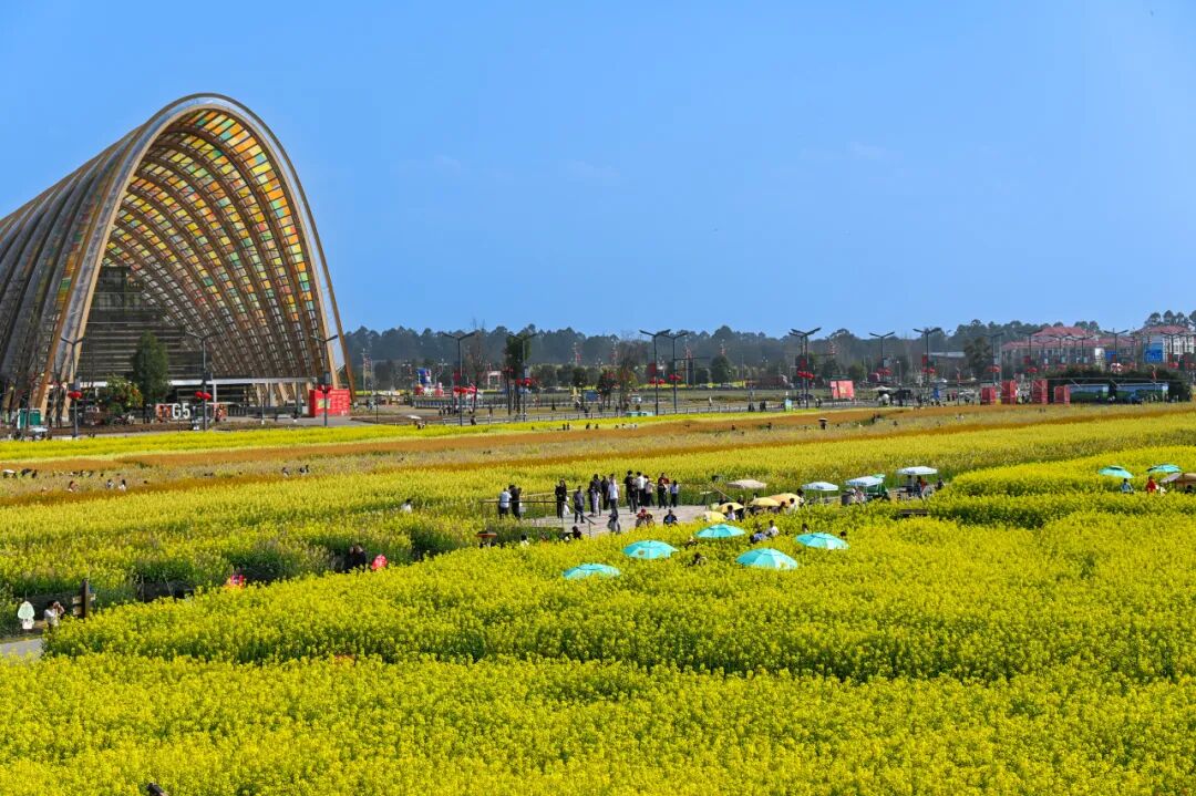 随着近日气温的持续上升,位于成都新津区的天府农博园内千亩油菜花海迎来了盛放期。广袤的田野上层层叠叠的油菜花开得热烈奔放勾勒出一幅美好的春日画卷。