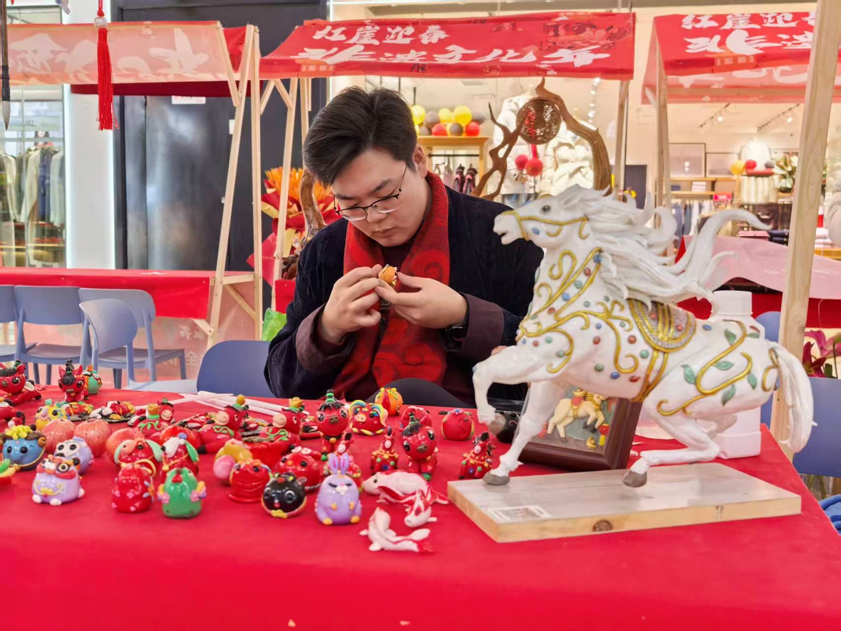 传统灯盏在他手中悄然蜕变。大胆创新材质,在豆面基础上融入新配方面粉与超轻黏土,作品在保留手塑温润质感的同时,拥有了更强的表现力与更久的生命力。萌态可掬的卡通小马、其乐融融的“全家福”动物家族……这些既承古意又具现代表情的新作,迅速俘获年轻家庭,成为孩子们珍爱的礼物,也成为连接代际的情感纽带。于植的实践印证:最好的传承,是让老技艺在时代土壤中持续萌发新枝。今年春节前,他作为辽宁唯一面塑技艺传承人,将庄河的“灯火”带至北京民族文化活动。小小面塑灯,正从一个家庭祈愿的温馨符号,成长为一张闪耀时代光泽的地方文化名片。