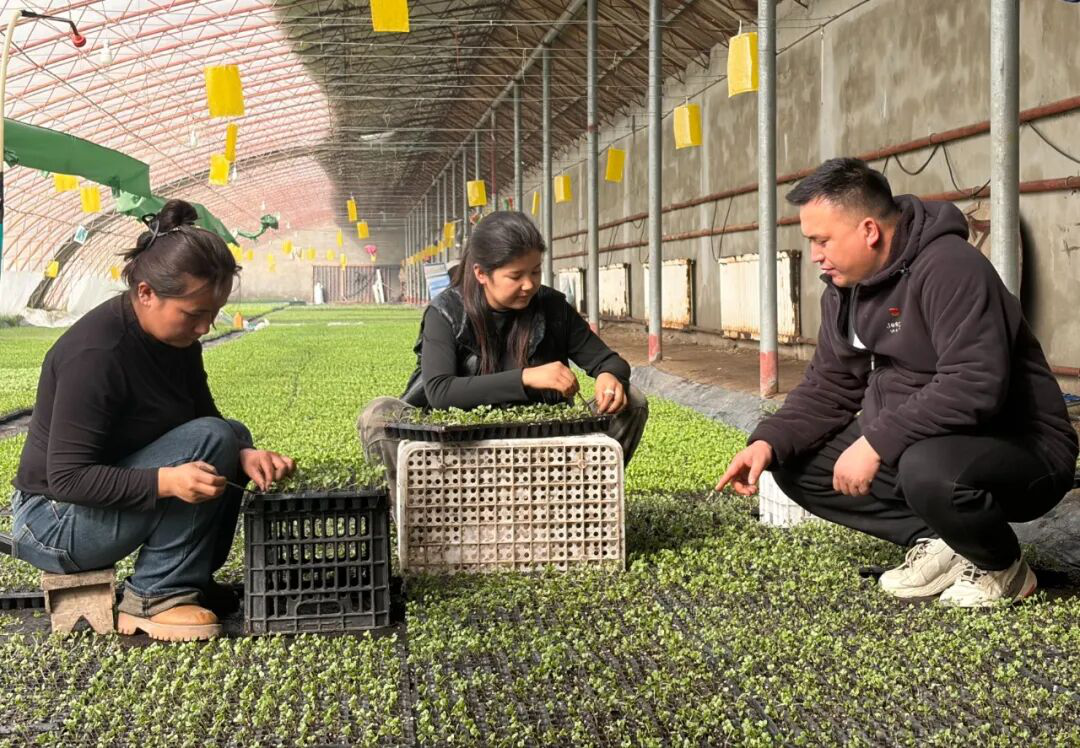 在沙雅县央塔克协海尔乡铁热克博斯坦村的温室大棚内一片繁忙,技术人员俯身蹲在育苗盘旁,细致查看菜苗长势,针对菜苗分苗、间苗、弱苗剔除等关键环节,以“面对面传技、手把手教学”的方式,向菜农讲解幼苗密度把控、根系发育养护、病虫害绿色防控等实用技巧,把专业农技转化为易懂的实操要领,切实解决菜农育苗阶段的技术难题。