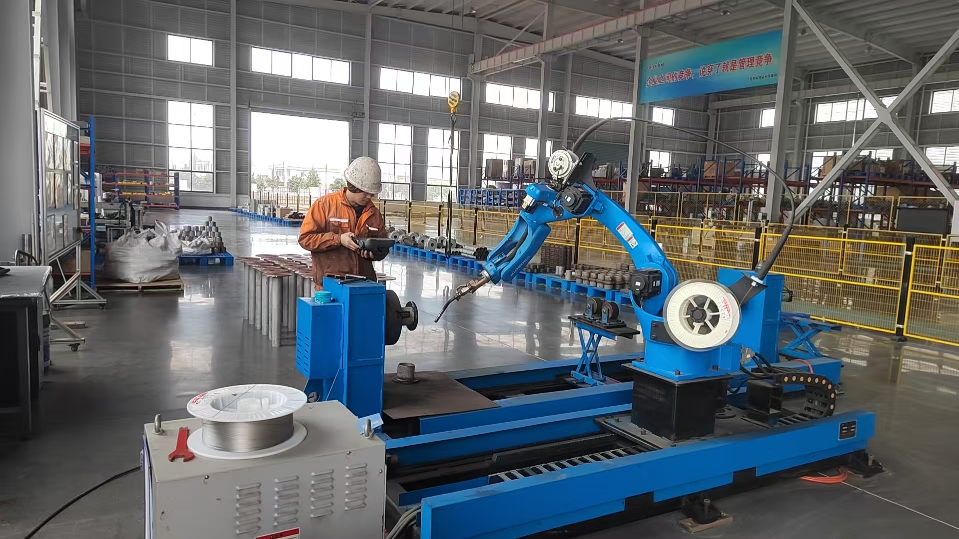 工人正在操作机械臂作业(邵梦 摄)