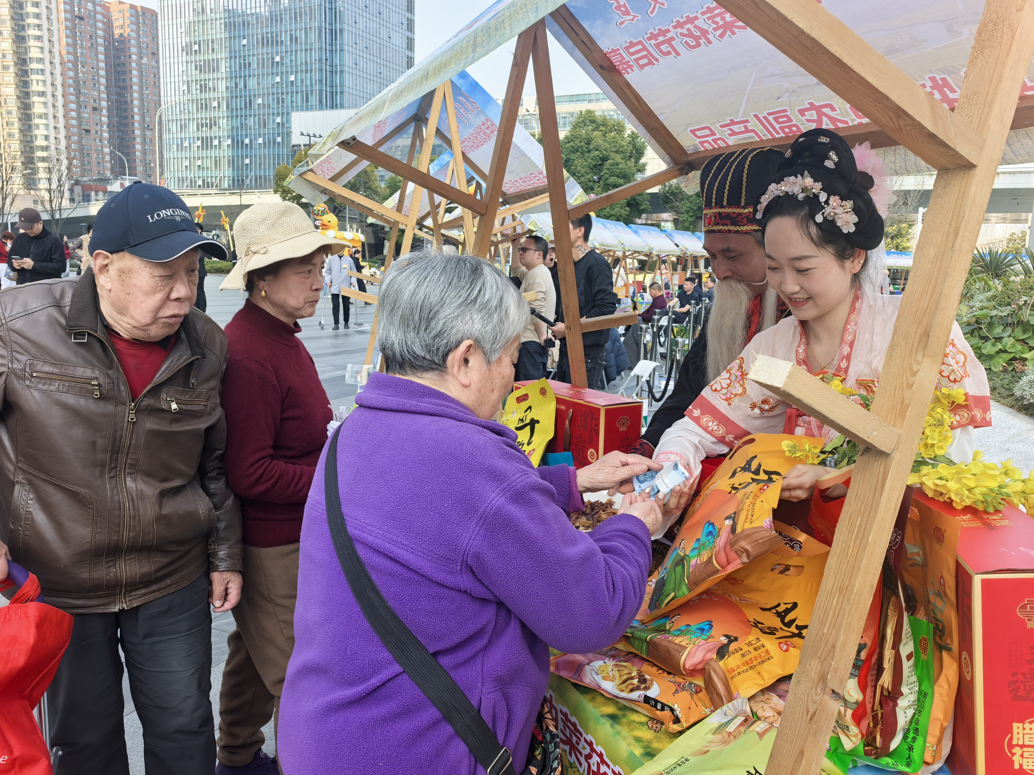 推介活动现场,沙洋风干鸡备受武汉市民喜爱(余惠玲 摄)