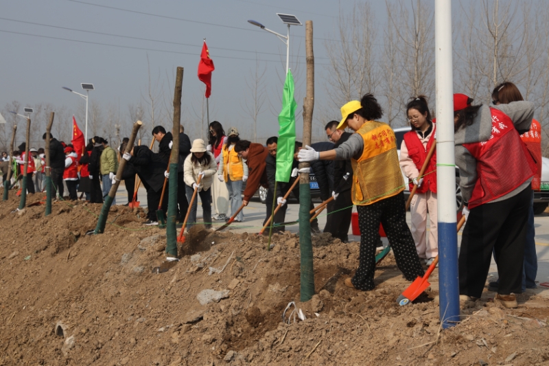 春风送暖,植树添绿。在第48个植树节来临之际,3月11日下午,江苏省徐州市铜山区郑集镇机关党员干部、志愿者70多人来到肖代路,开展植树造林志愿服务活动。