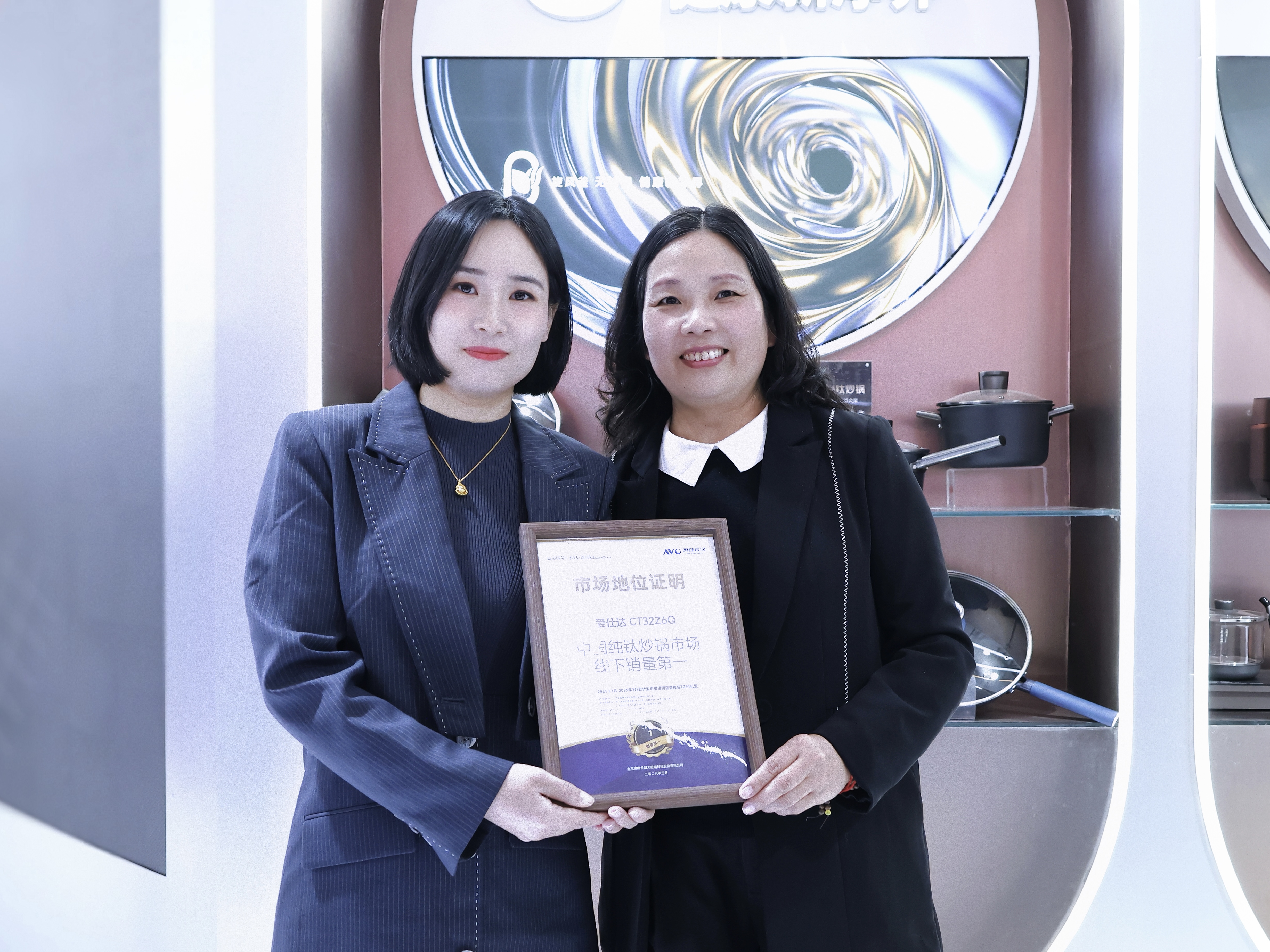 钛轻松系列采用领先轻量双层结构,涵盖纯钛系列、魔法钛铁系列及即将面市的钛钢0涂层系列。其中,纯钛系列锅具自上市后广受市场认可,旗下纯钛炒锅CT32Z6Q斩获“中国纯钛炒锅市场线下销量第一”荣誉,奥维云网小家电事业部总经理李婷现场为爱仕达颁发市场地位证明。这一系列锅具锅内表面采用100% TA1级纯钛板材,耐酸碱、耐腐蚀,几乎无重金属析出,32cm规格炒锅锅身重量仅约1kg,女性用户也能轻松实现颠炒操作。