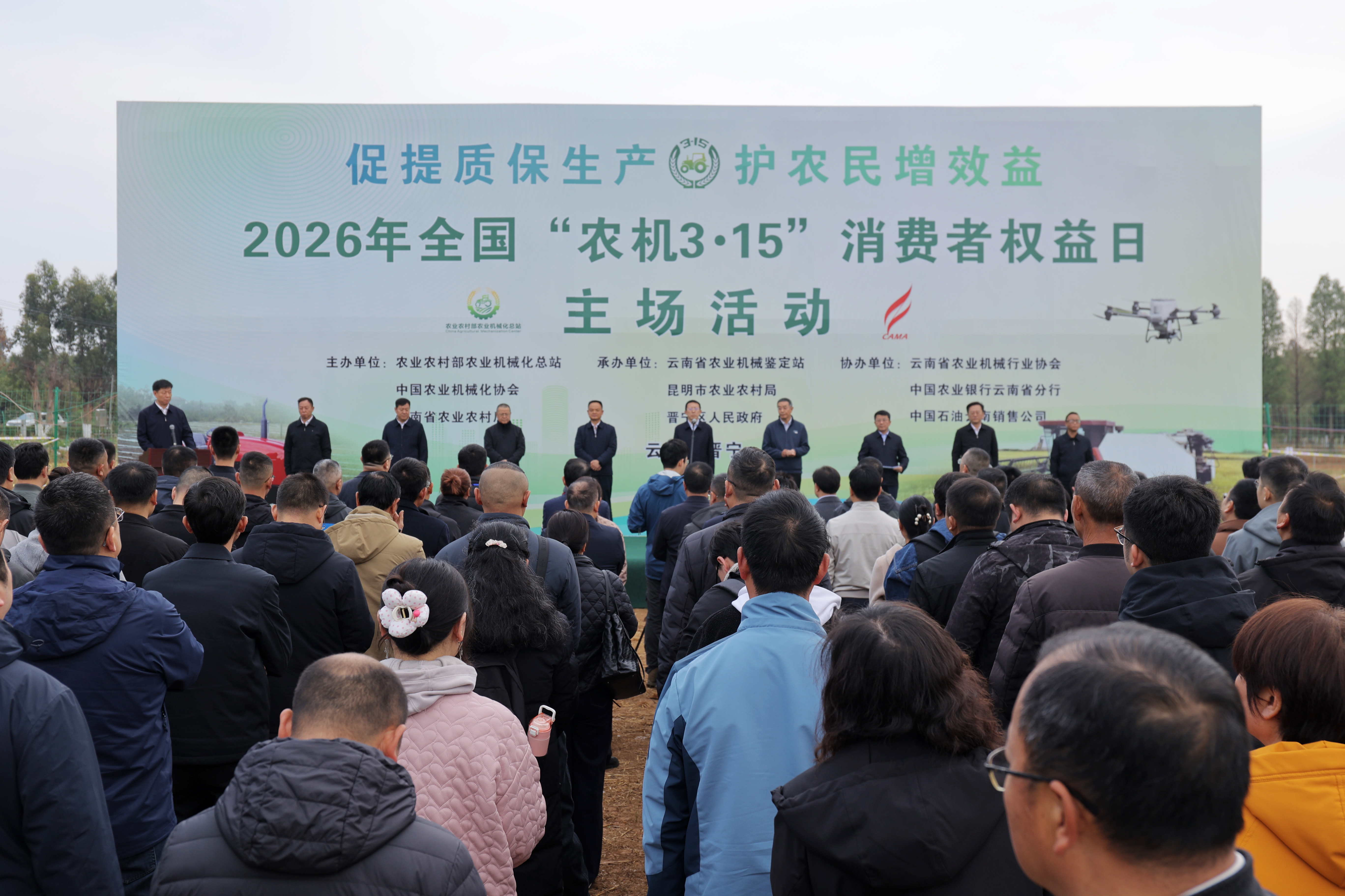 3月15日,由农业农村部农业机械化总站、中国农业机械化协会、云南省农业农村厅联合主办的2026年全国“农机3·15”消费者权益日主场活动在昆明市晋宁区举办,政府相关部门及科研院所、农机生产、销售、维修企业、农业生产经营组织和农户代表600余人参加活动。