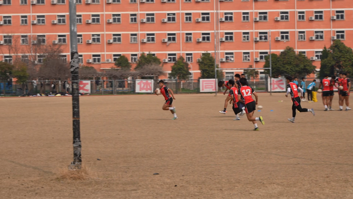 泗县双语学校体育场上橄榄球队在紧张训练(刘文化 摄)