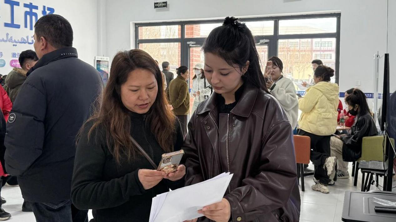 沙雅县沙雅镇向阳社区居民古丽斯坦·亚森:“今天的招聘会上岗位很多,也有适合我的岗位。我看了好几家企业,也填写了求职信息,工作人员还主动帮我推荐合适的岗位,服务特别贴心。”