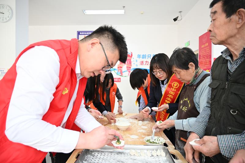 农行志愿者为老人们包饺子 (潘明新 摄)