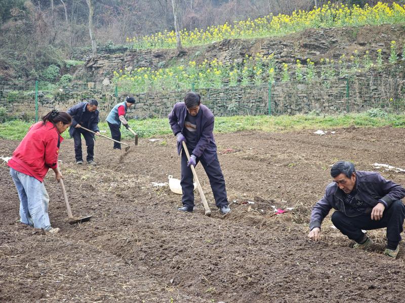 耕地、锄草、理沟、播种、覆土……3月12日一大早,四川省广元市朝天区沙河镇鱼鳞村二三组的桃李园内便已人声鼎沸,10余名村民分散在果园各处,忙着锄地、清理杂草、清理沟渠等,春日的果园里满是忙碌又鲜活的农事气息。