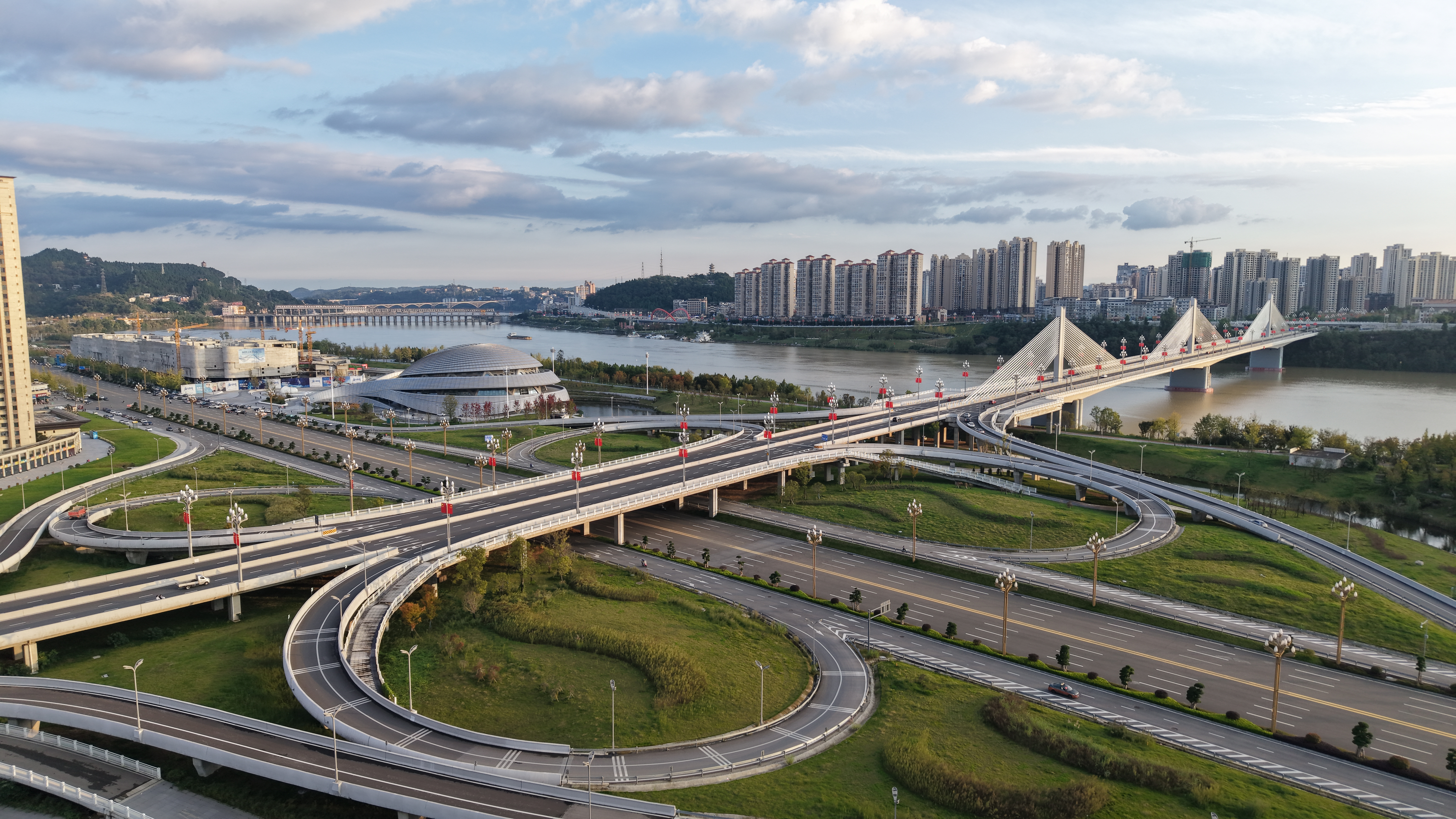 南部县城嘉陵江三桥,老城与新城融为一体。(陆勇 摄)