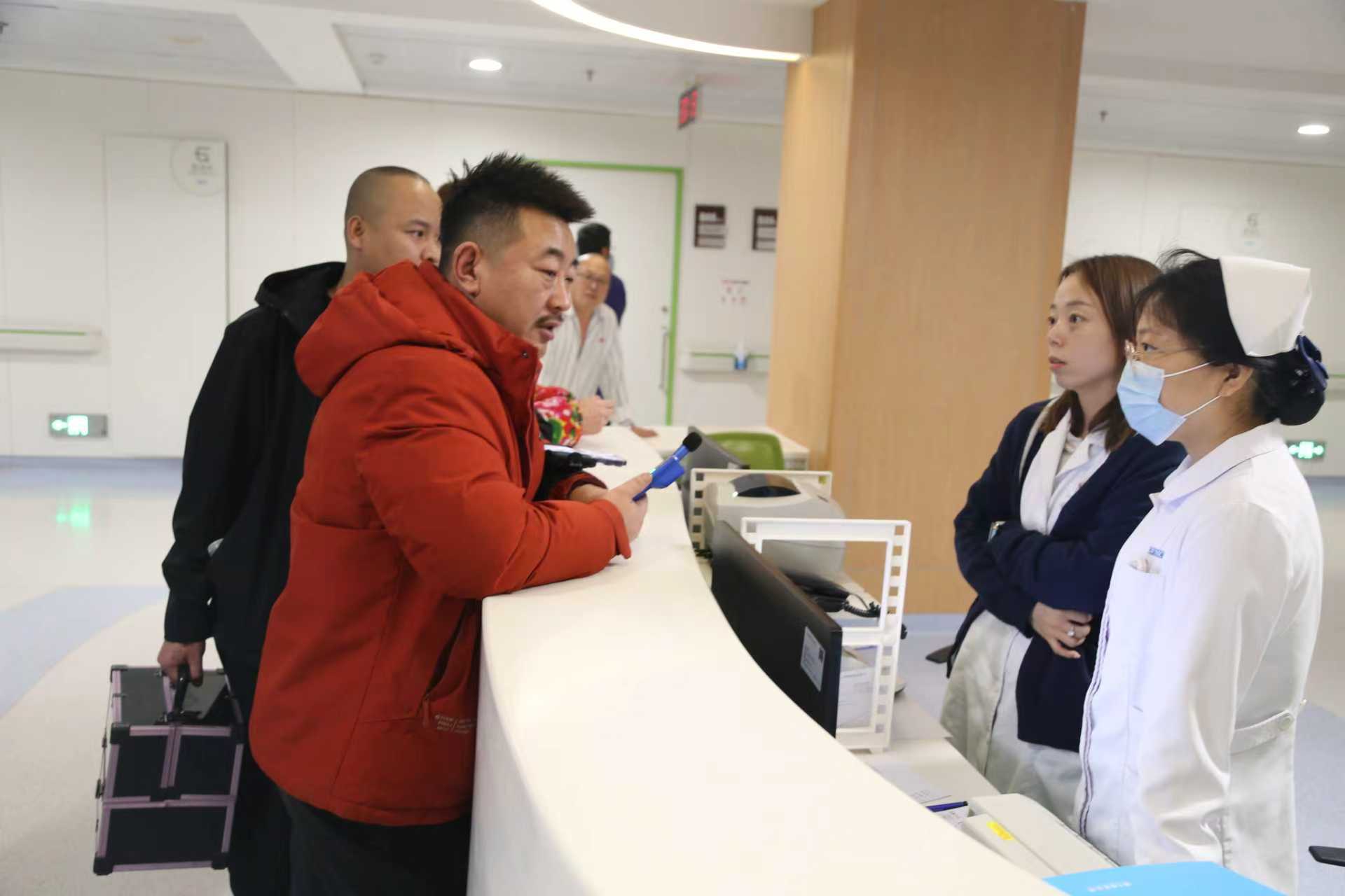 公益主播王子林在医院了解患者病情,并为患者纪文中交住院押金。(伊少军 摄)