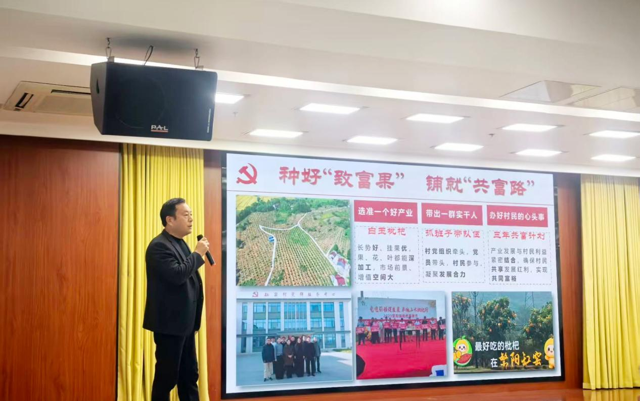 前不久,缸窑村党委书记盛明付在全区“担当作为好书记”上台讲演活动中介绍道:“缸窑村通过小枇杷打了个翻身仗,核心密码是什么呢?答案就是:选准一个好产业,带出一群实干人,办好村民的心头事。全村锚定的核心产业,就是白玉枇杷种植。”