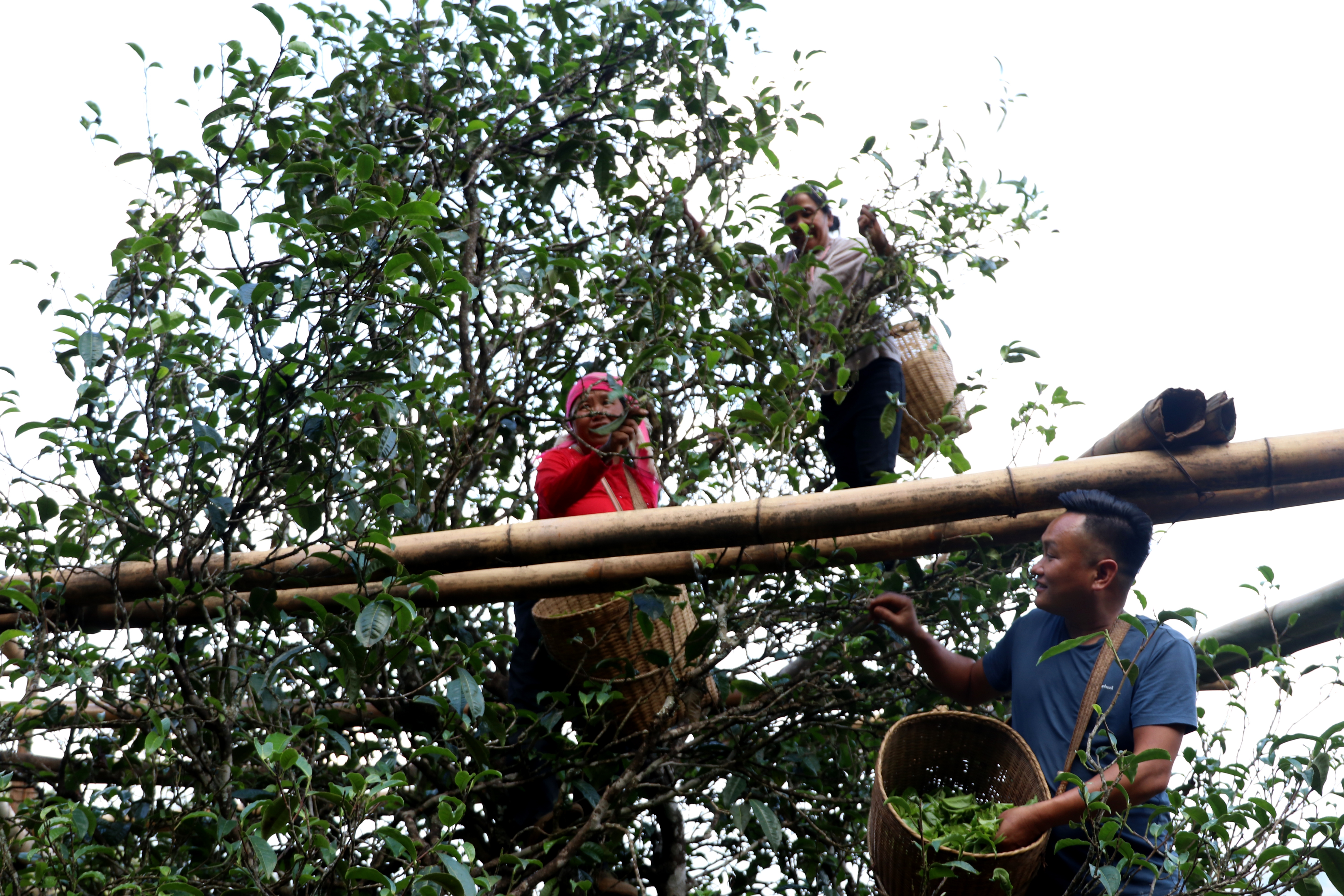 小户赛古茶园里,茶农按照相关技术标准进行采茶。(费永和 摄)