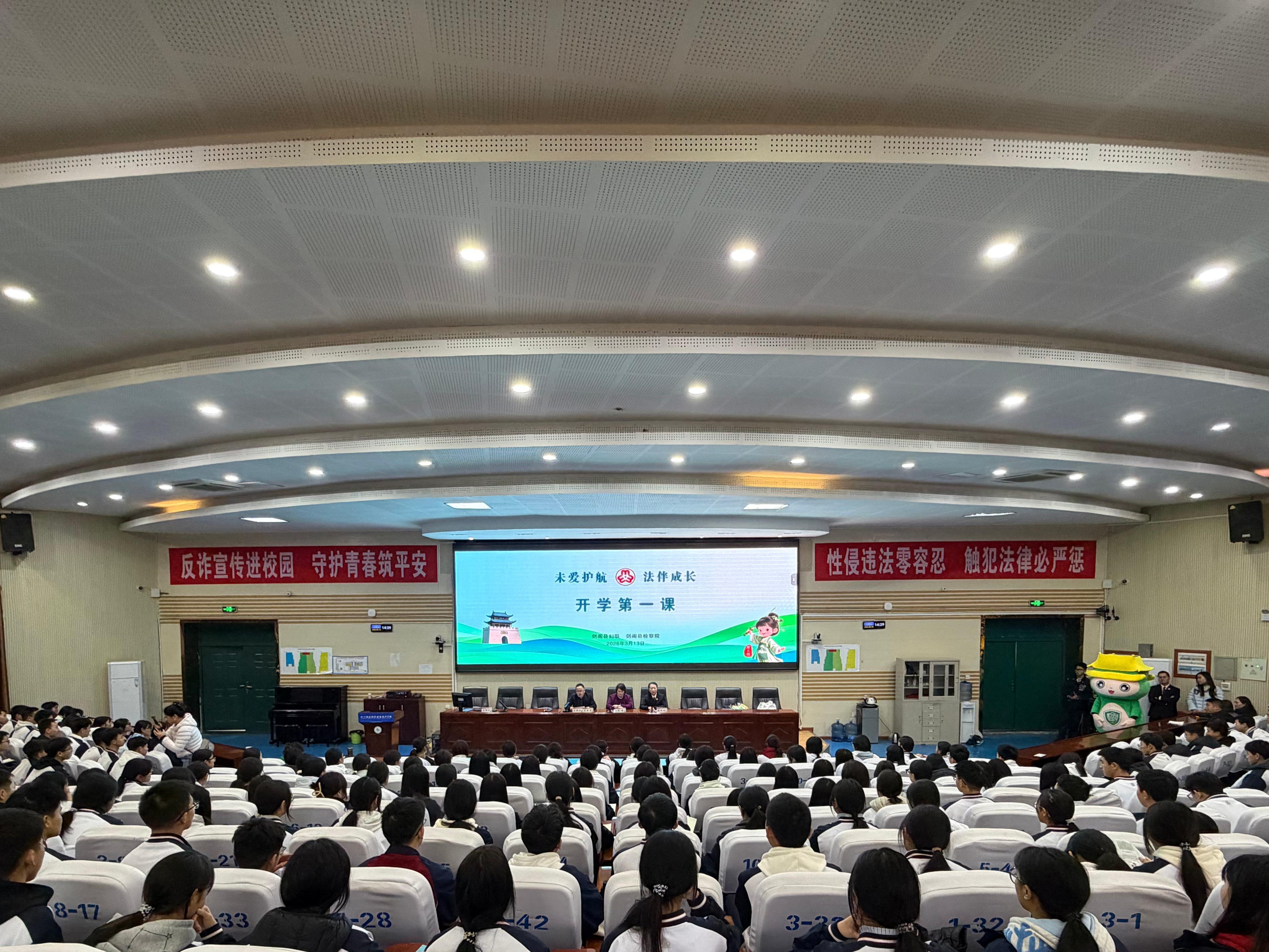 为深化未成年人全面综合司法保护,筑牢校园安全法治屏障,近日,四川省剑阁县检察院联合县妇联走进剑阁县职业高级中学,开展“以法为盾护青春 以技筑梦向未来”主题“开学第一课”活动,采用“线上直播+线下授课”模式覆盖全校师生4000余人。
