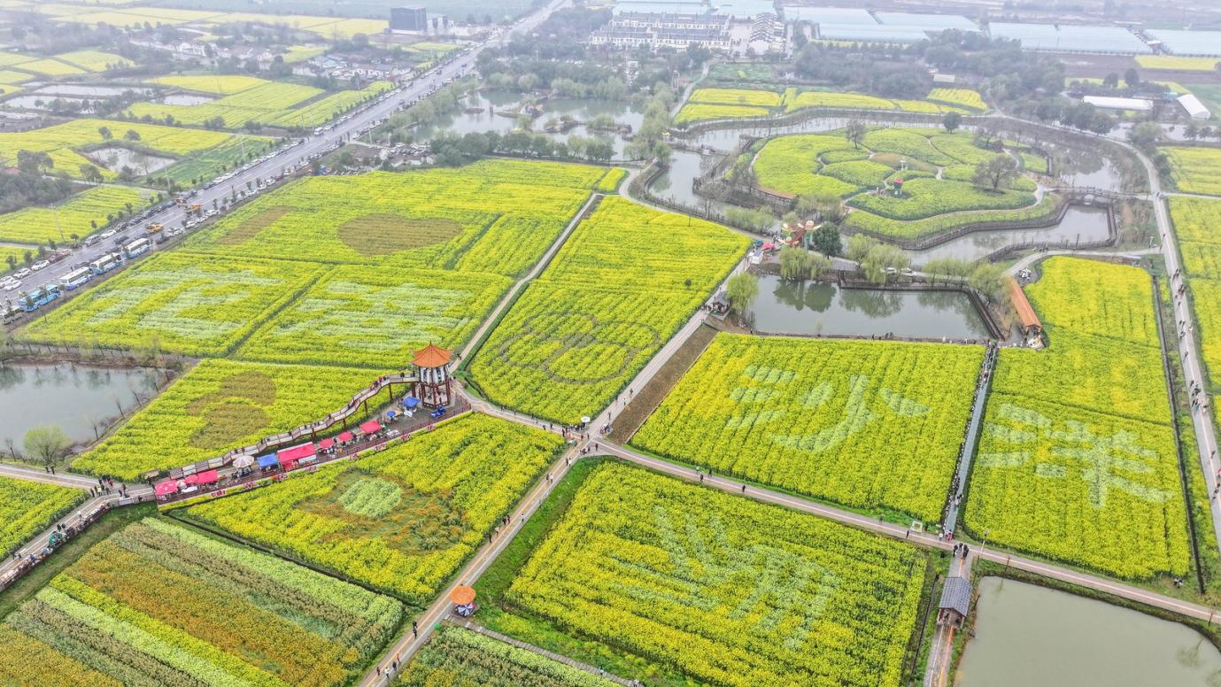 沙洋县曾集镇张池村农耕文化体验园的油菜花海(吉世兰 摄)