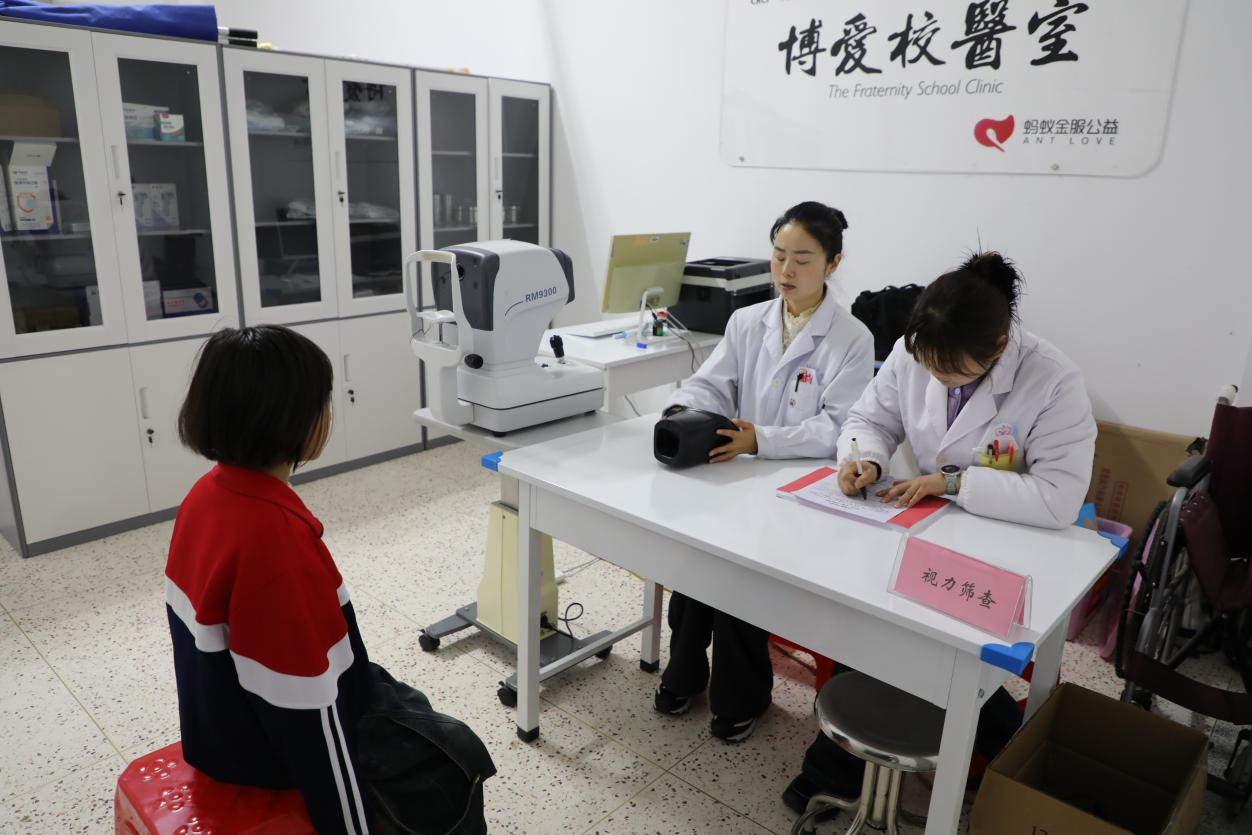 医务人员为毕昇小学学生检查口腔(刘钊海 摄)