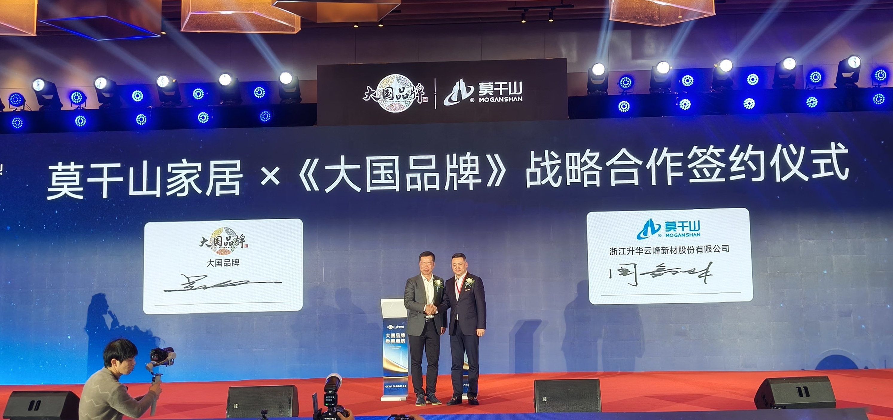 在全场瞩目中,浙江升华云峰新材股份有限公司董事长周鑫林与CCTV《大国品牌》总出品人吴纲先生签署战略合作协议并授牌,标志着莫干山正式跻身中国品牌国家队,以国牌之姿迈向世界。