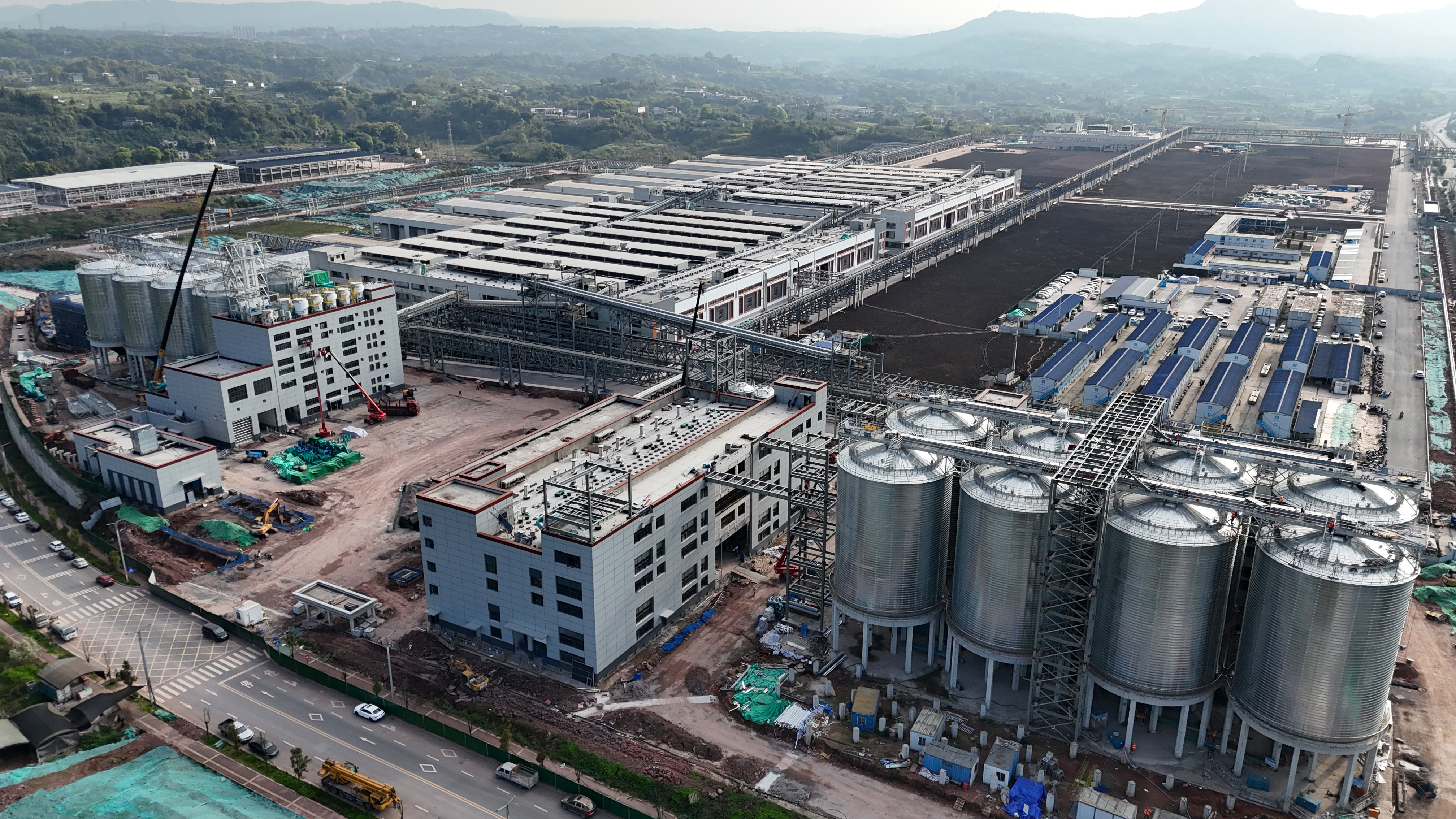 春日的泸州,重点项目施工现场热潮涌动。3月19日,在泸州老窖智能酿造技改项目一期工程现场,200余名工人分布在各作业面,紧张有序地进行内外装饰装修、照明设备安装及路面绿化等收尾工作。贯穿整个施工区域的空中管廊架已全部架设完毕,污废水管、循环水管、蒸汽管、消防管等各类管道排布规整,如同“空中动脉”有序延伸。目前,项目一期主体结构已全面完工,总体进度达78%。
