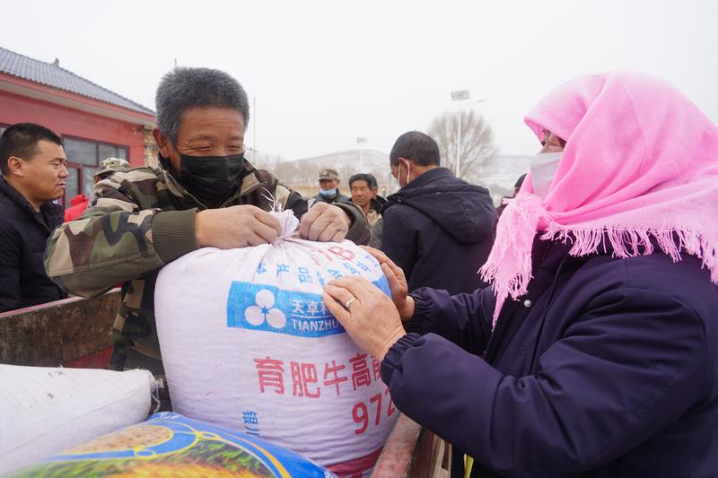 农户前来拌种(柳强 摄)
