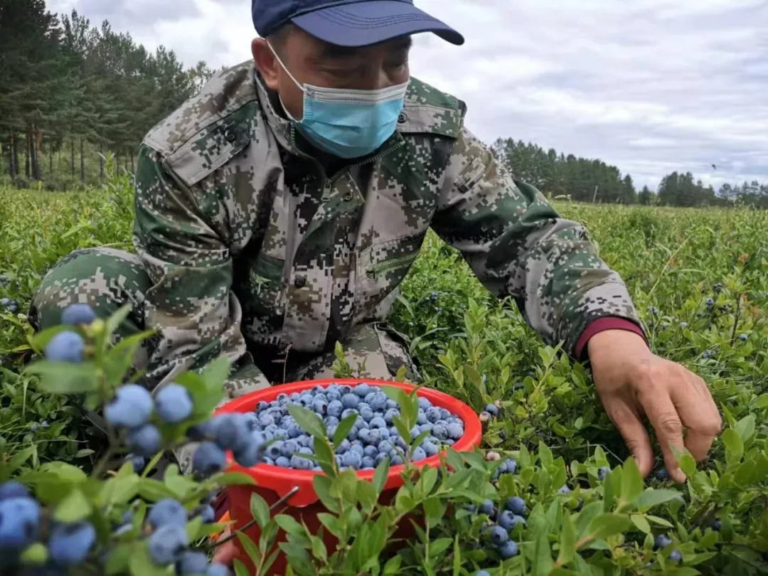林场职工正在采摘蓝莓(蒿梦琪 摄)