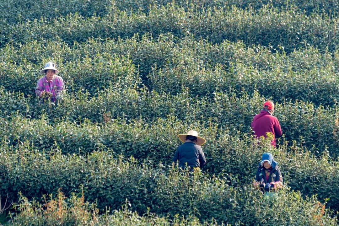 连日来,茶园之中,采茶工人们腰挎茶篓,指尖在枝丫间灵巧翻飞,精心采摘着最鲜嫩的单芽头,一派繁忙的春日采茶景象。